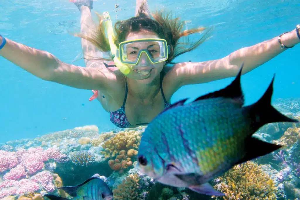 Float on the surface and dip your face underwater to witness the beauty beneath.